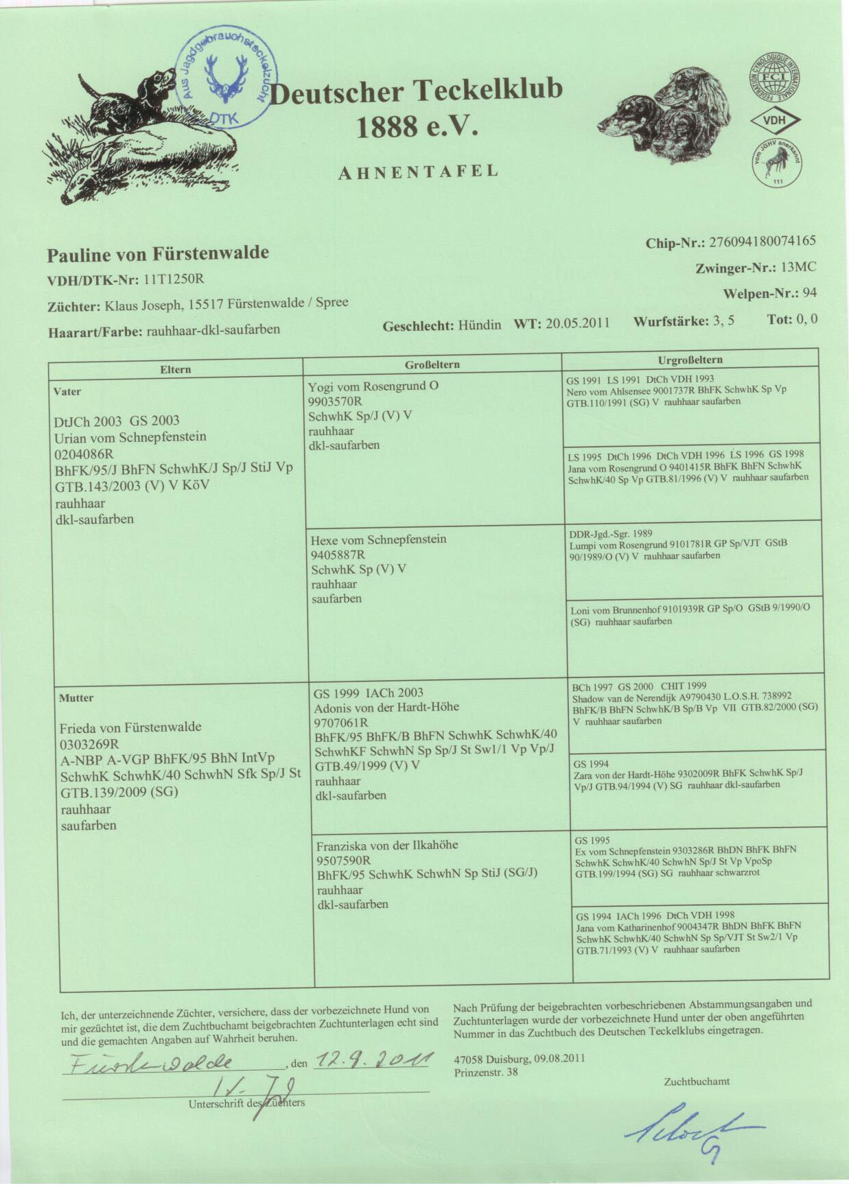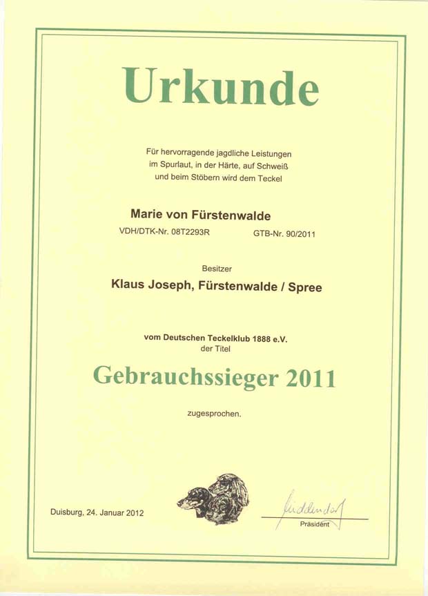 *Gebrauchssiegerurkunde 2011