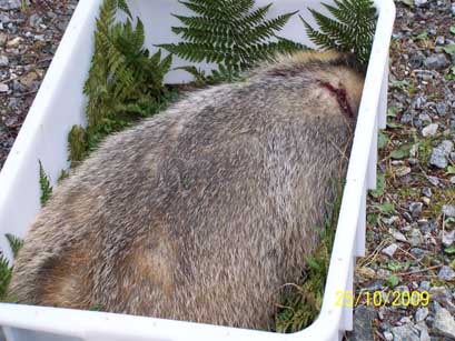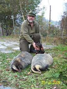 so ein kleiner Hund u der große Dachs der Dachs nach dem Graben nach dem Jagderfolg