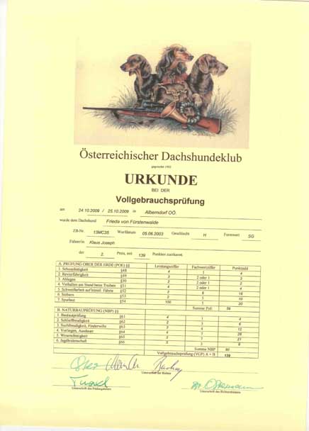 beim Österreichischen Dachshundeklub am 24.10 u 25.10 2009 mit Frieda