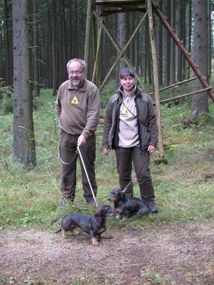 Der zweite Tag der Prüfung: Ilka Becker und ich beim Besprechen der Prüfung unter der Erde im Naturdachsbau